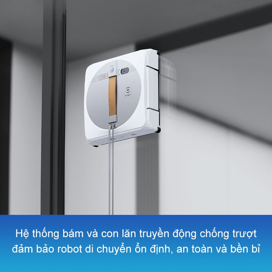 - Lực hút mạnh mẽ: Lực hút 2.800 Pa giúp robot bám chặt trên mọi loại kính, kể cả kính không khung.